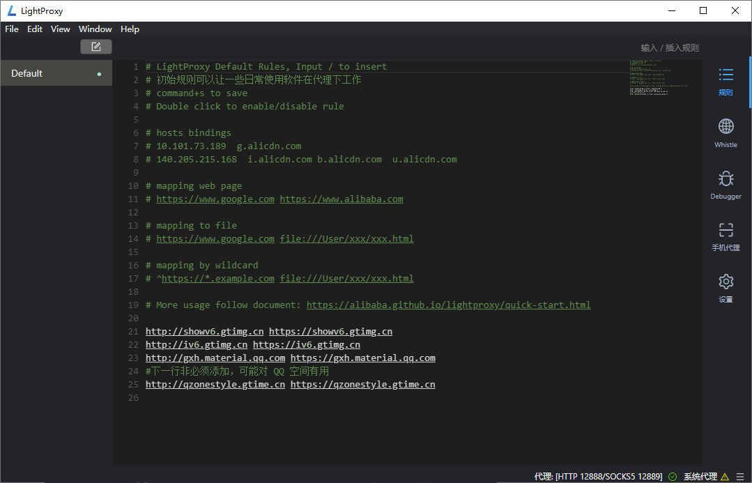 使用快捷键 Ctrl+S 保存配置,在右侧边栏[手机代理]中得到 WIFI 代理的地址。