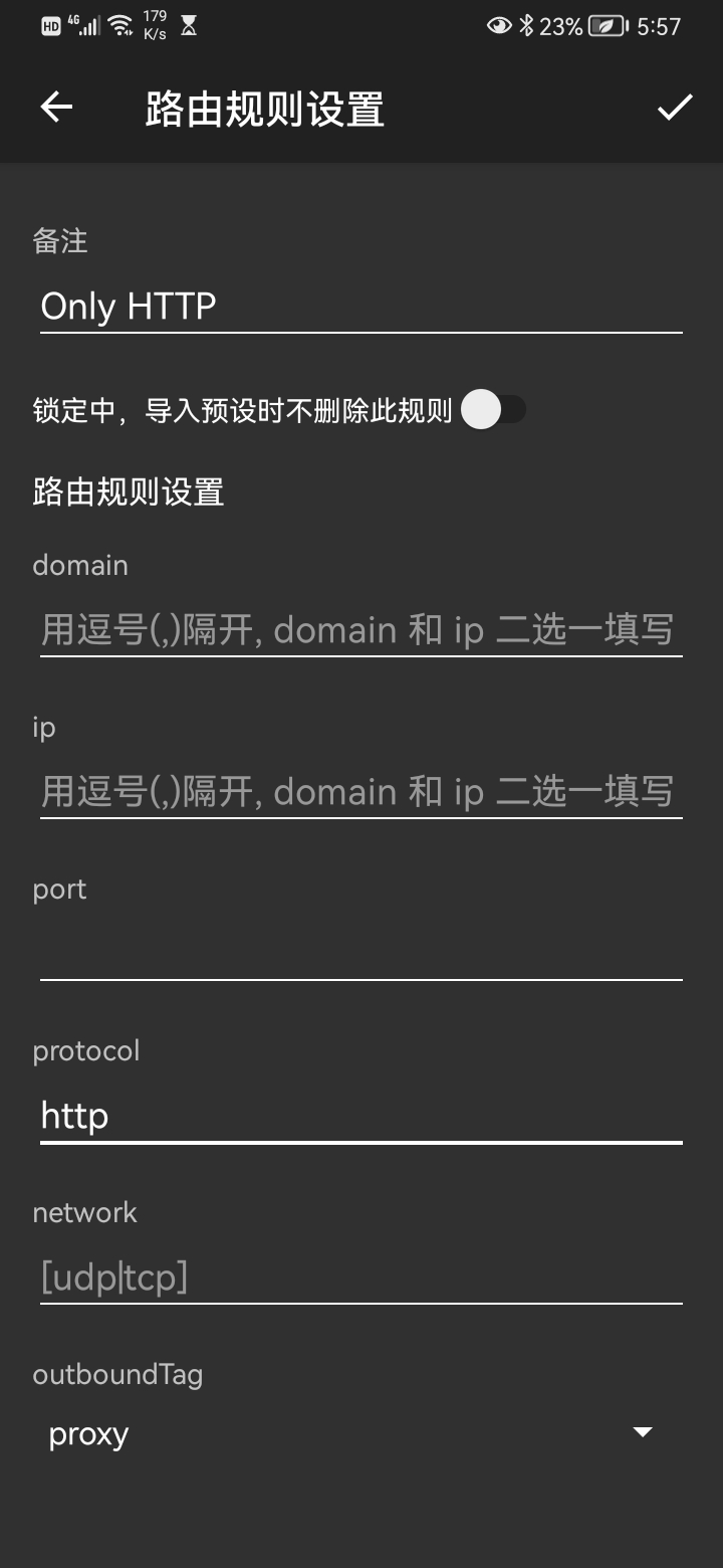 新添加一个路由规则,备注随意填,“protocol”填 http,其它不动